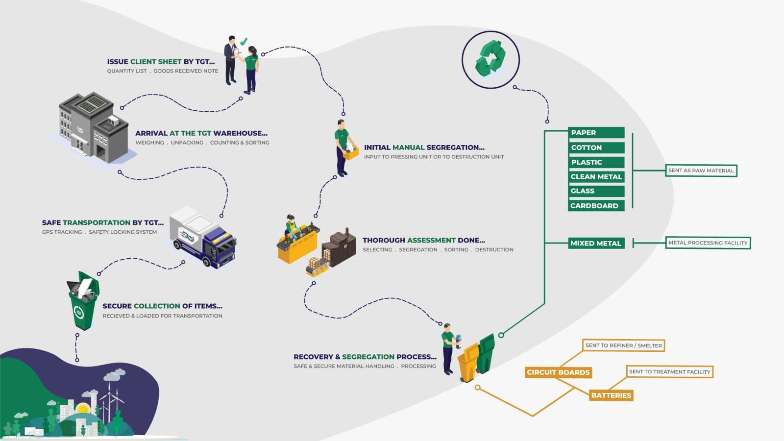 and we make recycling easy, creating a path in managing effectively and sustainably the treatment and disposal of recyclables. By providing exclusive access to us, your environmentally friendly and responsible partner, our comprehensive integrated solutions are a major asset for all industries in the public and private sectors. We are experts in the recycling, treatment and disposal of specialised Waste, ITAD, E- Waste, Refrigerants and EV Batteries.